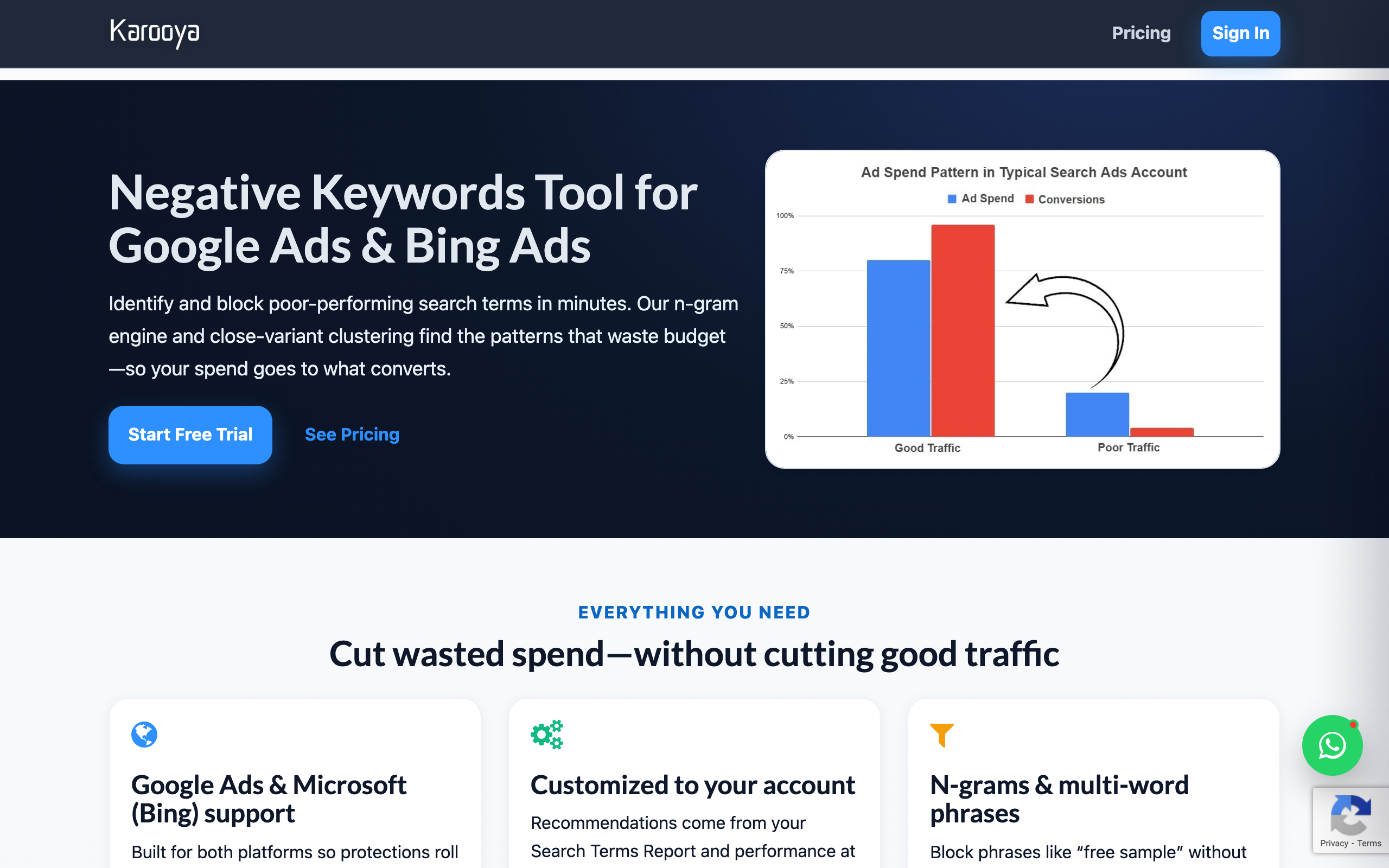 Ideal user: Anyone running Google Ads AND Microsoft Ads who wants a single tool focused on negative keyword optimization, and doesn’t mind paying monthly once their Google Ads spend surpasses 10 grand