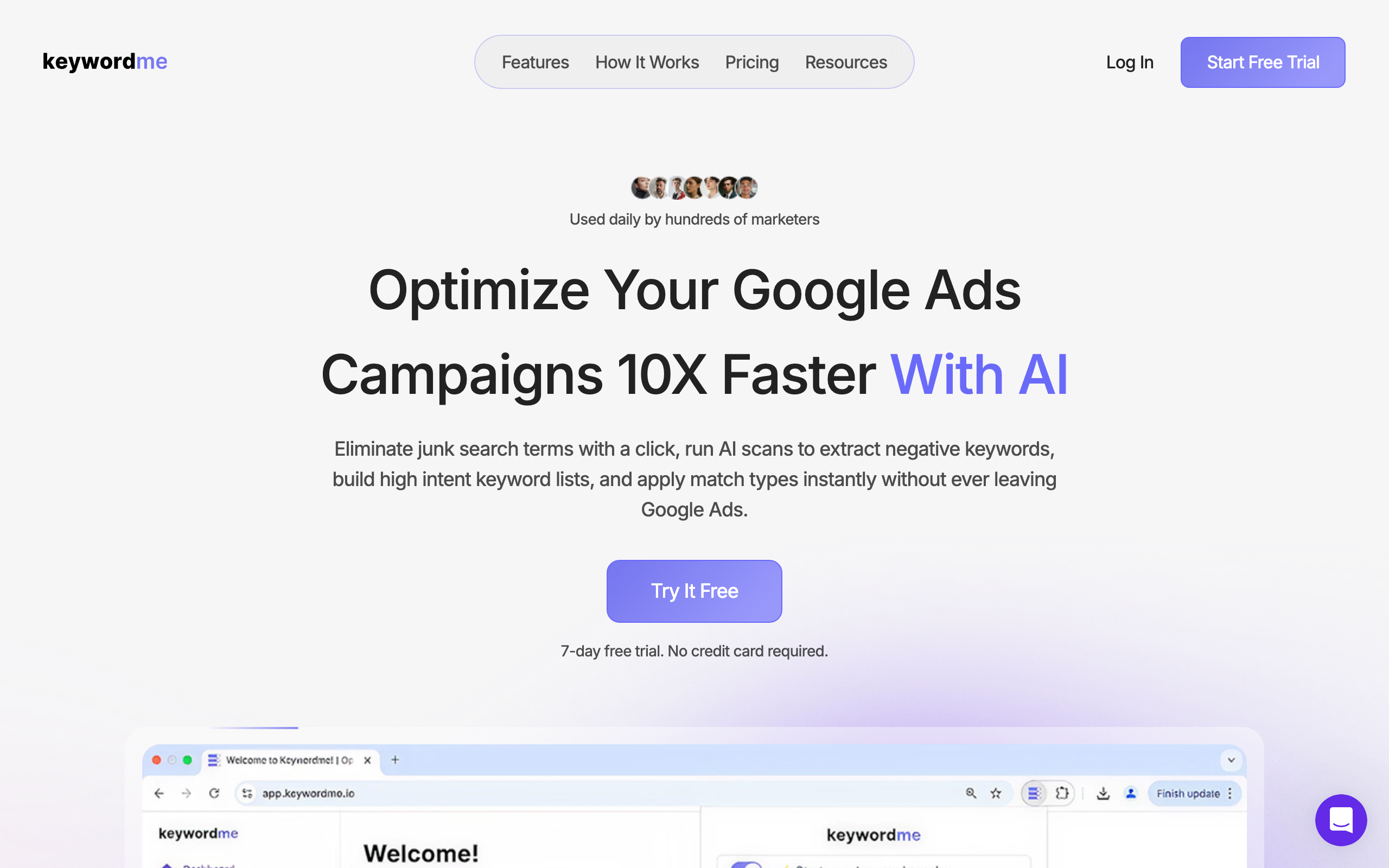 After connecting to your Google Ads account, Keywordme analyzes your search terms data and flags junk queries then allows you to apply them to your campaigns (or ad groups, shared lists) as negatives with one click. Instead of spending hours digging through spreadsheets, Keywordme guides you through a review process to quickly identify queries you want to exclude from your campaigns.
